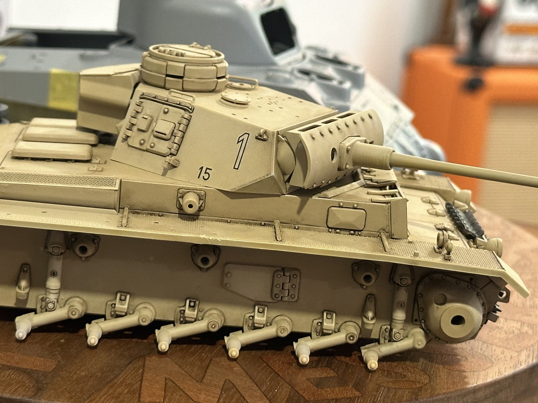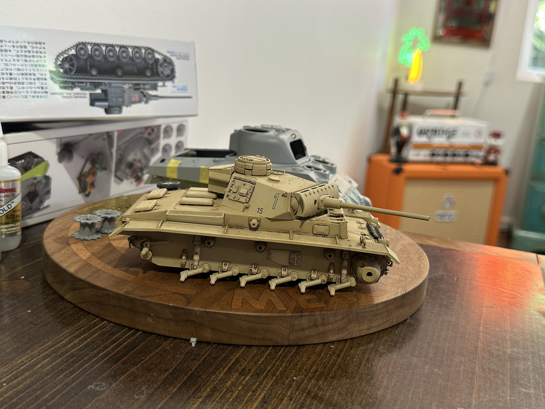 I still need to dry brush the wheels a tad. After that, oil paint dot filters. On deck: the tools and other small bits and bobs like the machine guns, antenna, and so forth.