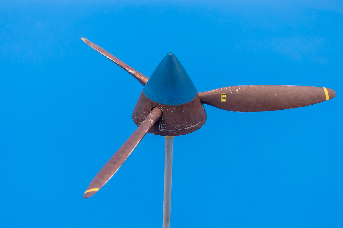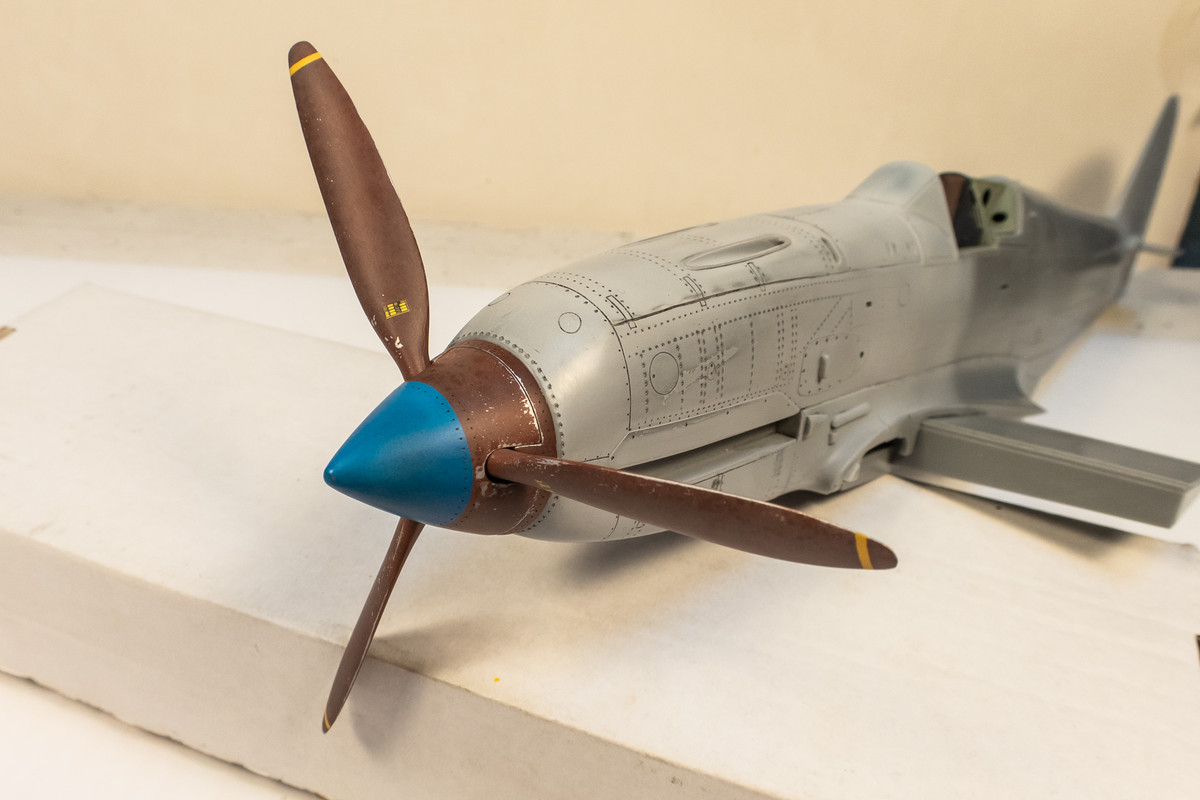 The prop spinner will be two-tone in color and still needs the blue to be masked and painted.