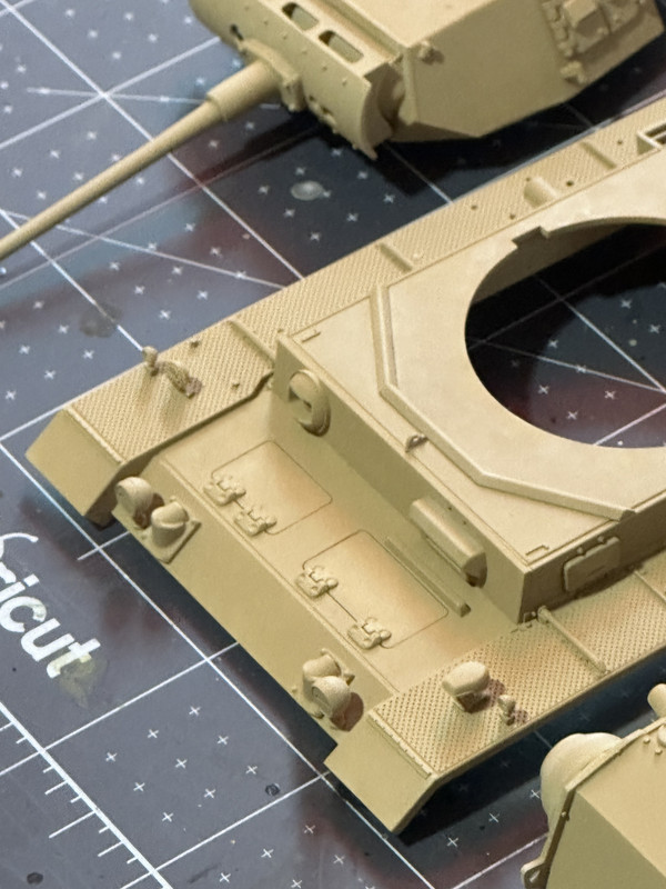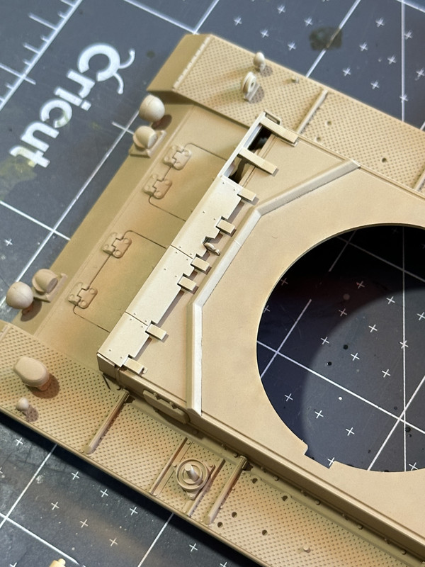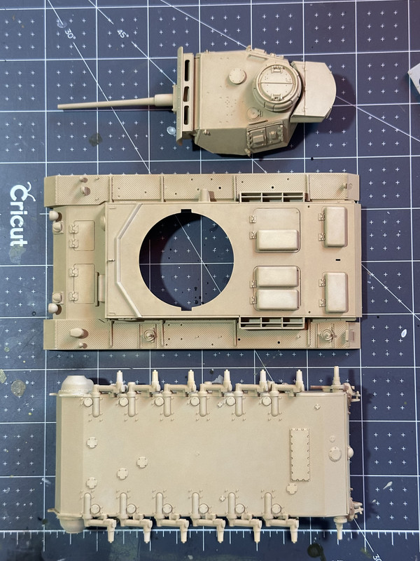I’ll be doing more paint work this weekend on the running gear, the extra armor, as well as the exhaust. Maybe the tools, if I have time. One all that stuff is painted and attached, I’ll do the decals, and then assemble it all together in preparation for weathering. I will report back regularly with updates. In the meantime thanks for looking!!